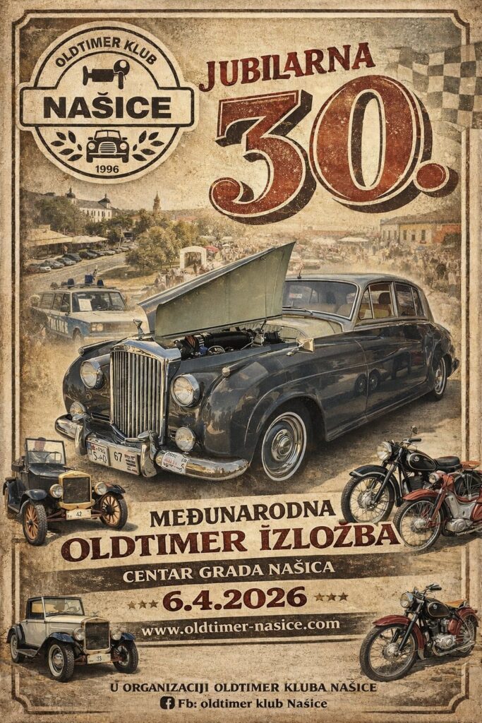6. travnja 2026. godine u centru grada Našice okupiti će se, vjerujemo, nikada veća ekipa sa svojim ljubimcima. Osigurajte svoje mjesto na vrijeme prijavom putem Facebook stranice Oldtimer kluba Našice ili putem maila klub@oldtimer-nasice.hr.